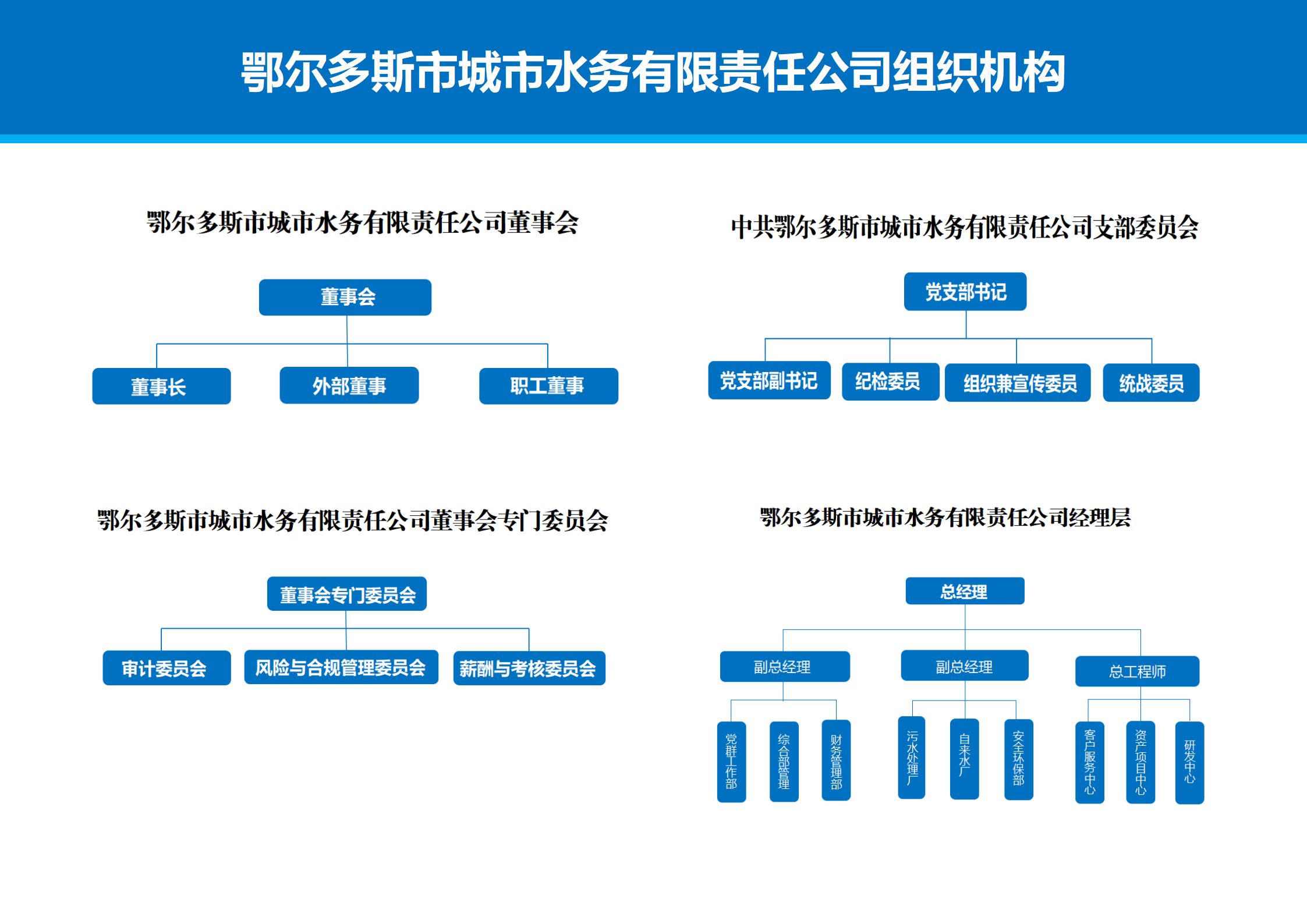 名稱:鄂爾多斯市城市水務(wù)有限責(zé)任公司 | 簡稱:城市水務(wù)公司 法定代表人: 馬軍 |