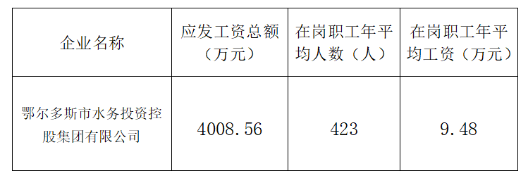 現(xiàn)將鄂爾多斯市水務(wù)投資控股集團(tuán)有限公司2021年度工資總額信息披露如下: