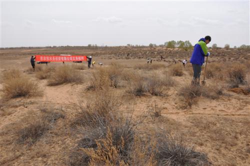 2017年4月14日,我公司組織員工19人到鄂前旗三段地馬場(chǎng)井村開展“保護(hù)母親河 愛我鄂爾多斯—2017植綠護(hù)綠行動(dòng)”。馬場(chǎng)井村長(zhǎng)年處于干旱、多風(fēng)沙季節(jié),為起到防風(fēng)固沙作用,通過(guò)與當(dāng)?shù)啬撩裣嗷f(xié)作利用一整天時(shí)間種植了20畝灌木檸條,為改善當(dāng)?shù)厣鷳B(tài)環(huán)境做出一份貢獻(xiàn)。